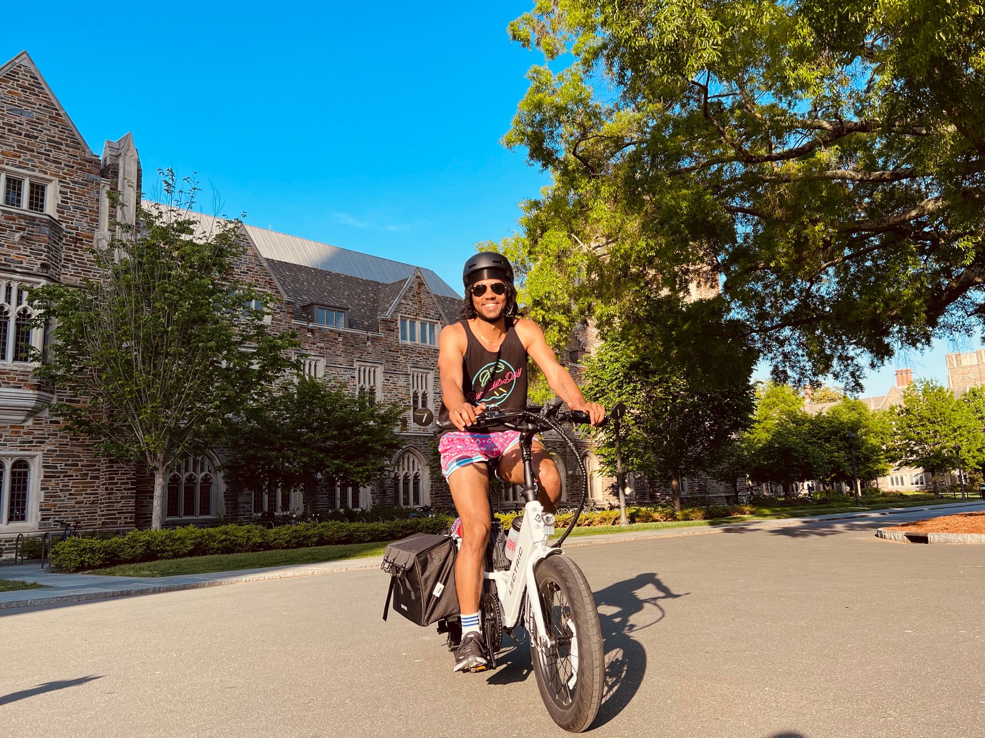 I’ve been a bike commuter for almost a decade and have evangelized the lifestyle to whomever will listen. I wrote a column for the April/May issue of Durham Magazine trying to persuade more folks to adopt #bikelife in celebration of National Bike Month. But this is my first foray into the world of e-bikes. I’ve had mine for almost a month and I’m addicted. All the best parts of riding a bike turned up to 11 (or in this case 5 since that’s the highest level of pedal assistance). I rode with another e-bike owner last week. We bonded over the fact that now we look for excuses to leave the house just to get in more riding time.